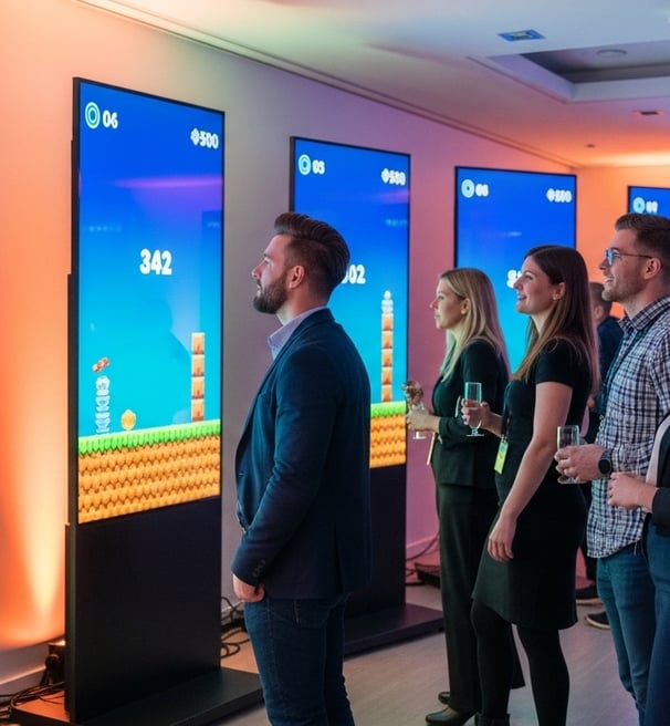 Creamos los videojuegos más potentes para los stands de tu feria, evento corporativo, tu empresa o marca.